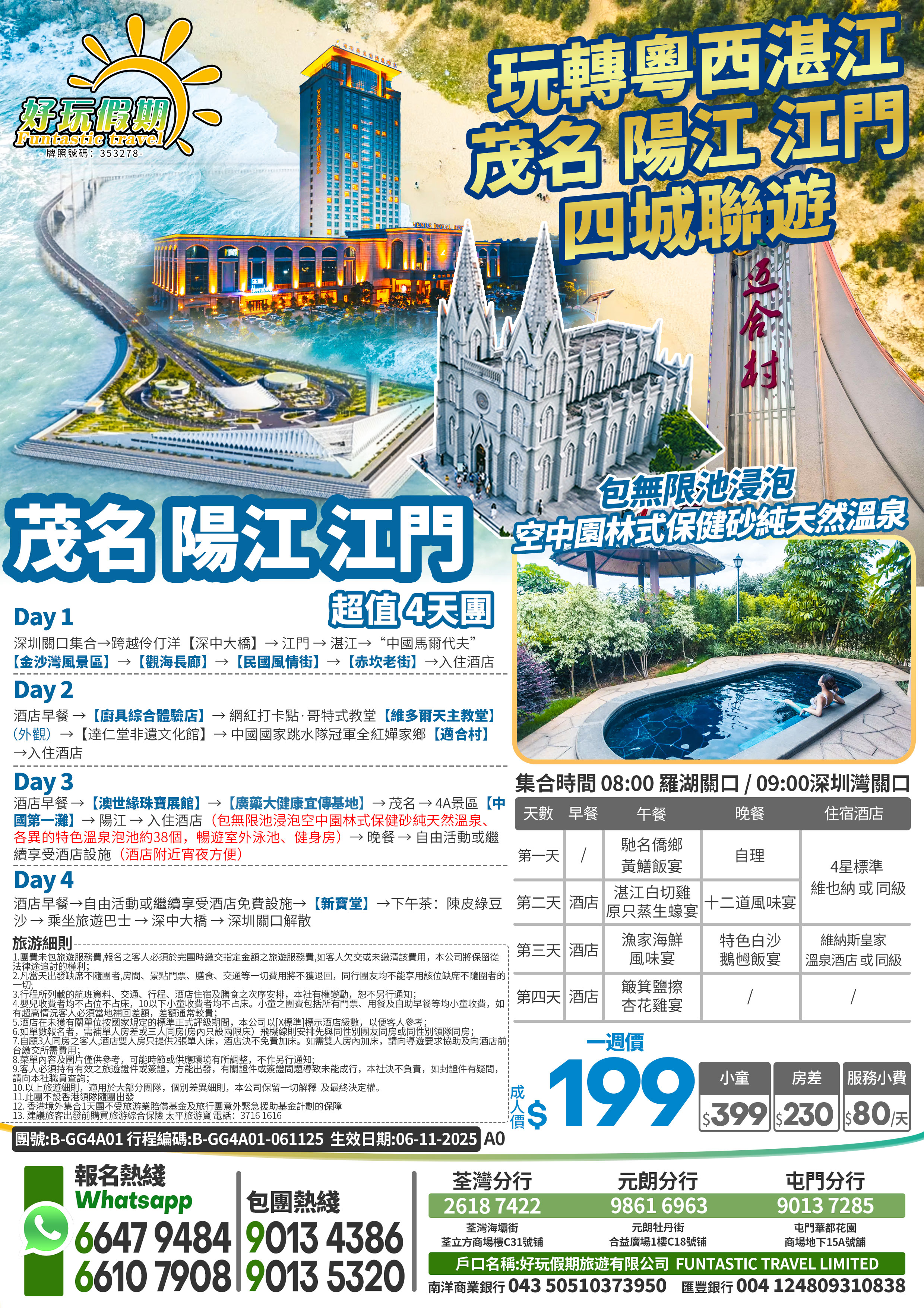 穿梭“深中大橋” 玩轉粵西湛江、茂名、陽江、江門四城聯遊超值四天團