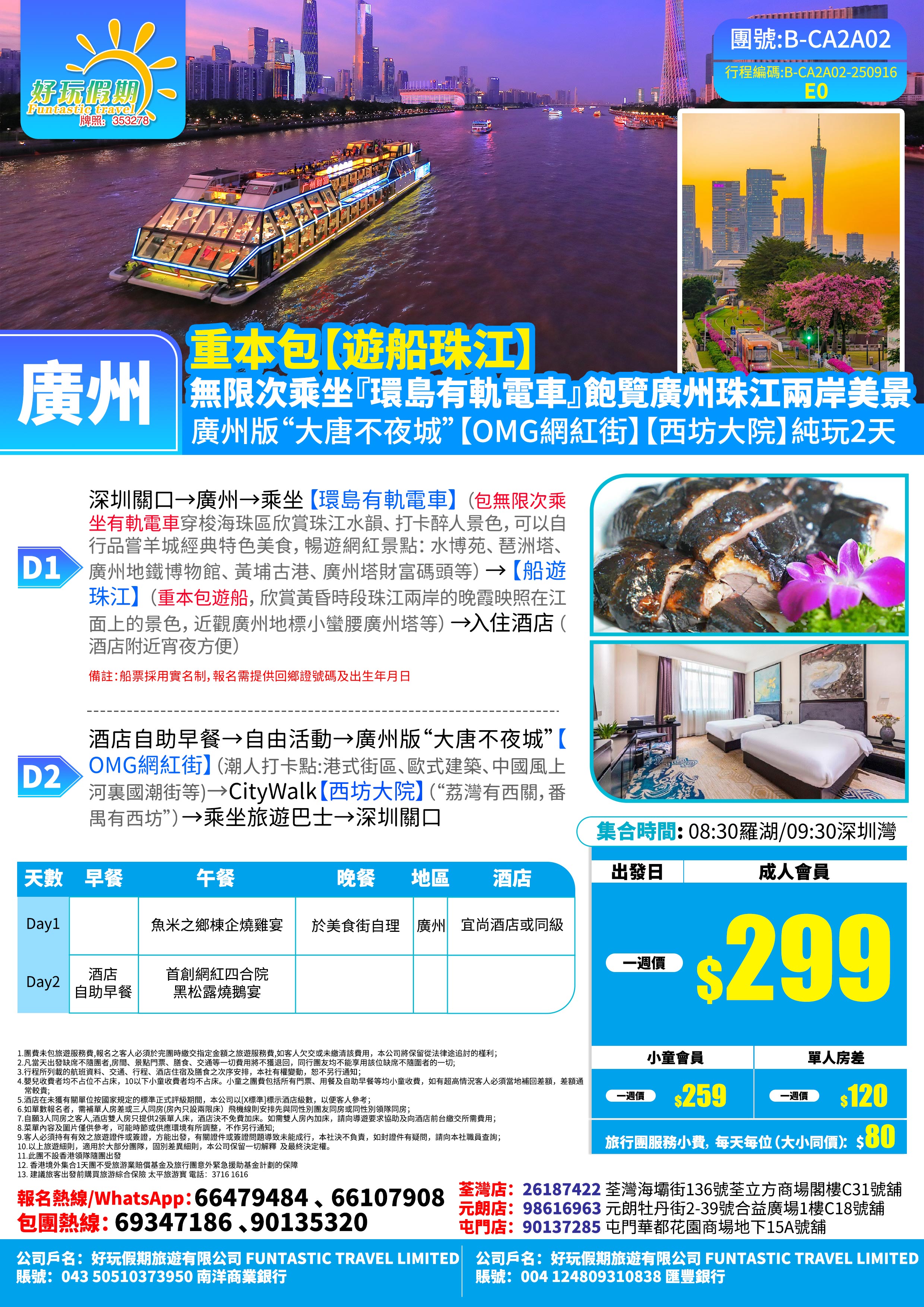 重本包【遊船珠江】 無限次乘坐『環島有軌電車』飽覽廣州珠江兩岸美景 廣州版“大唐不夜城”【OMG網紅街】【西坊大院】玩2天